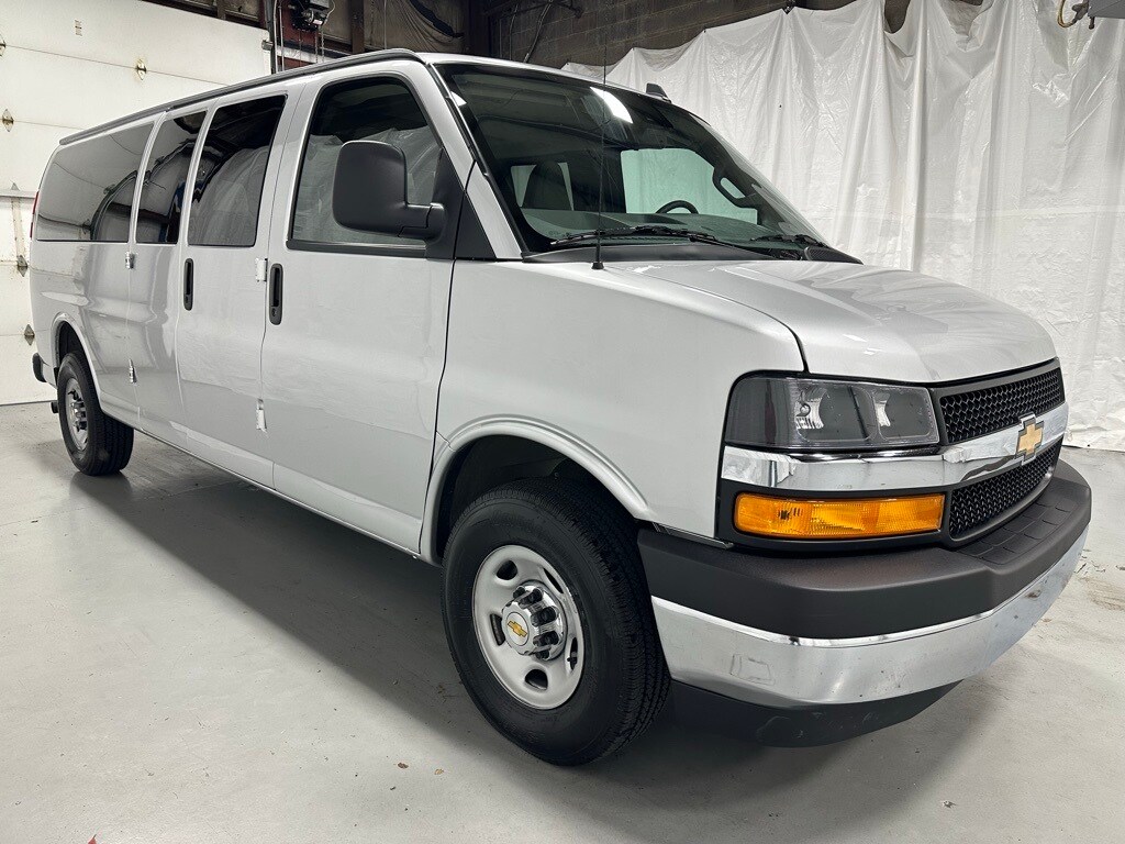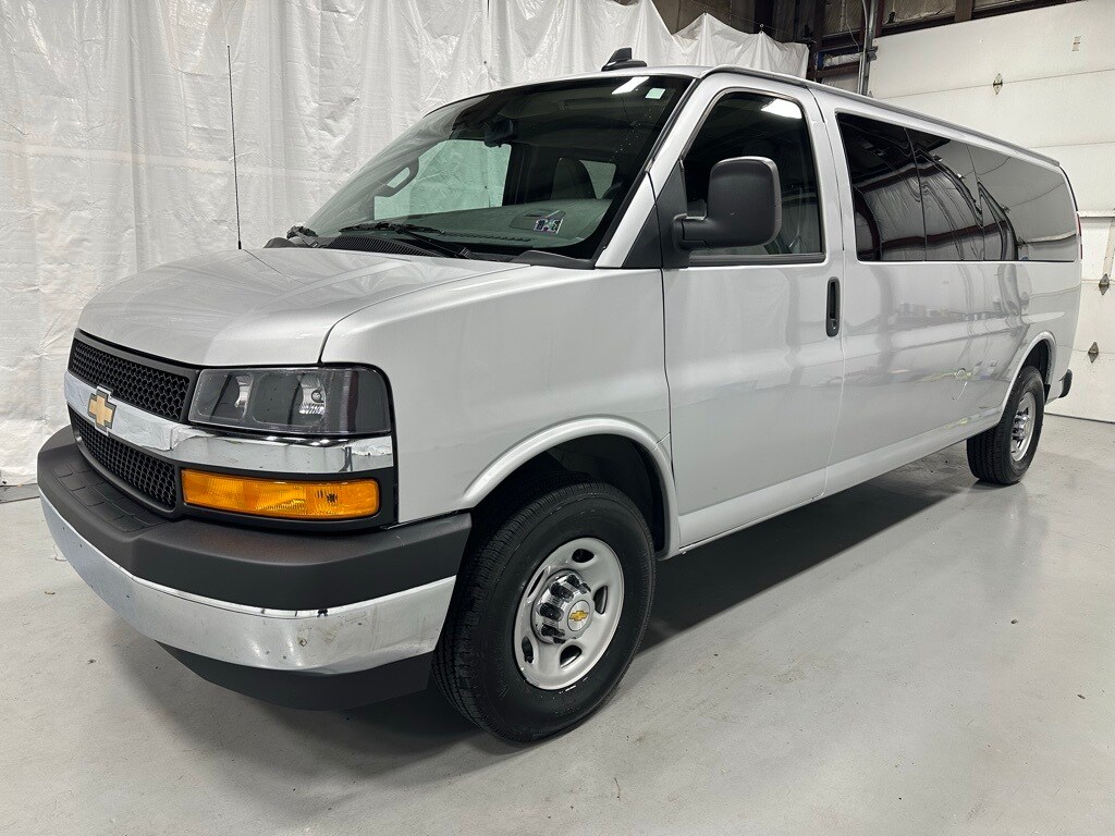 **15-Passenger Seating, Forward Collision Warning, Privacy Glass** Balance of Factory Warranty, Bluetooth, 6.6L V8, RWD, Silver Ice Metallic, Medium Pewter w/Custom Cloth Seat Trim, 15-Passenger Seating (2-3-3-3-4 Seating Config), Air Conditioning, AM/FM Stereo w/MP3 Player, Automatic Headlights, Chrome Appearance Package, Chrome Grille, Deluxe Console w/Swing Out Storage Bin, Forward Collision Alert, Front & Rear Chrome Bumpers w/Step-Pad, Full-Floor Color-Keyed Carpeting, Lane Departure Warning System, Power windows, Preferred Equipment Group 1LT, Rear air conditioning, Remote Keyless Entry, Theft Alarm Notification, Wheel Trim w/Chrome Center Caps.