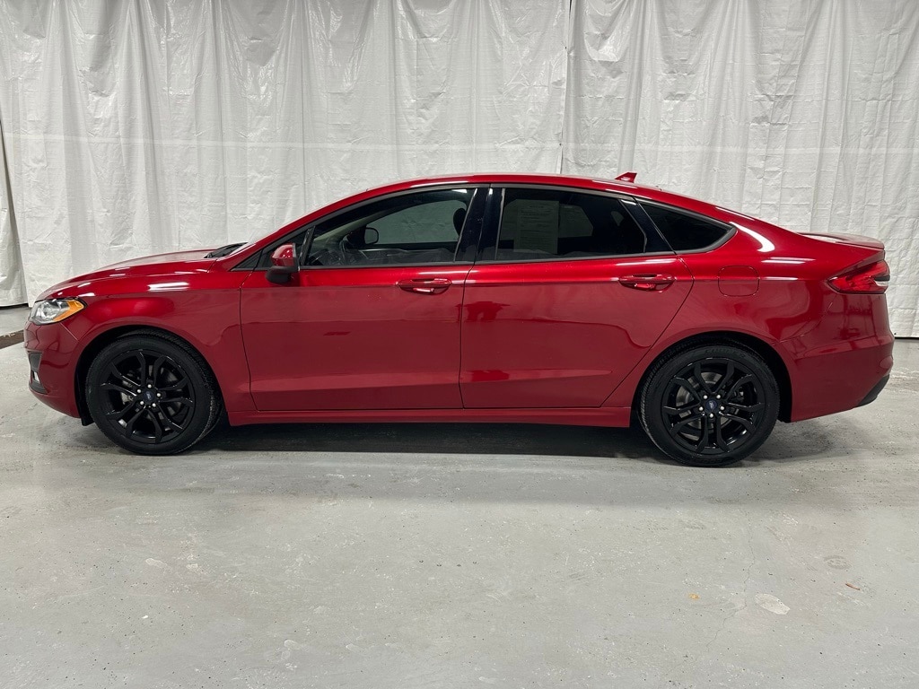 **Appearance Package, Co-Pilot 360 Package, Navigation, Blind Spot Monitor, Auto High Beams, Rain Sensing Wipers, Forward Collision Warning, Adaptive Cruise Control** Bluetooth, 1.5L EcoBoost, 6-Speed Automatic, FWD, Rapid Red Metallic Tinted Clearcoat, Adaptive Cruise Control w/Stop & Go, AM/FM radio: SiriusXM, Auto High-beam Headlights, Auto-dimming Rear-View mirror, Automatic Headlights, Backup Camera, Cloth/Vinyl Bolster Seats, Equipment Group 151A, Ford Co-Pilot360 Assist, Front dual zone A/C, Fusion SE Appearance Package, Halogen Fog Lamps, Leather-Wrapped Steering Wheel, LED Signature Lighting, Power driver seat, Power windows, Rain sensing wipers, Rear Spoiler, Remote keyless entry, SiriusXM Radio, Voice-Activated Touchscreen Navigation System, Wheels: 18" Ebony Black-Painted Aluminum.