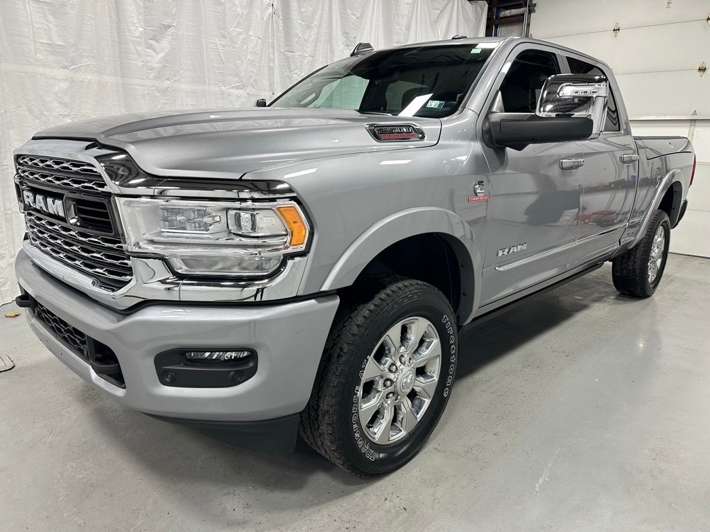**Level 1 Equipment Group, Power Sunroof, RamBox, Heated and Cooled Front Seats, Heated Rear Seats, Heated Steering Wheel, 360 Camera, Power Running Boards, Blind Spot Monitor, Auto High Beams, Rain Sensing Wipers, Forward Collision Warning, Lane Departure Warning, Adaptive Cruise Control, LED Headlights** Balance of Factory Warranty, Bluetooth, Cummins 6.7L I6 Turbodiesel, 4WD, Billet Silver Metallic Clearcoat, Black w/Limited Leather Bucket Seats, 12" Touchscreen Display, 17 Speaker harman/kardon Premium Sound, 4 Adjustable Cargo Tie-Down Hooks, 4G LTE Wi-Fi Hot Spot, Adaptive Cruise Control w/Stop, Adaptive Steering System, Adjustable pedals, Alexa Built-In, Apple CarPlay, Auto High-beam Headlights, Auto-dimming door mirrors, Auto-dimming Rear-View mirror, Automatic Headlights, Connected Travel & Traffic Services, Connectivity - US/Canada, CTR Stop Lamp w/Cargo View Camera, Digital Rearview Mirror, Disassociated Touchscreen Display, For Details, Visit DriveUconnect.com, For More Info, Call 800-643-2112, Full Speed Forward Collision Warning Plus, Global Telematics Box Module (TBM), Google Android Auto, GPS Antenna Input, GPS Navigation, HD Radio, Heated Front Seats, Heated Rear Seats, Heated steering wheel, Integrated Voice Command w/Bluetooth, Lane Keep Assist, LED Bed Lighting, Limited Level 1 Equipment Group, Memory seat, MOPAR Spray In Bedliner, Off-Road Information Pages, Power Deployable Running Boards, Power driver seat, Power Sunroof, Quick Order Package 2HM Limited, Radio: Uconnect 5 Nav w/12.0" Display, Rain sensing wipers, RamBox Cargo Management System, Ramcharger Wireless Charging Pad, Selectable Tire Fill Alert, SiriusXM Radio Service, SiriusXM w/360L, Surround View Camera System, Trailer Reverse Guidance, Trailer Tow Pages, Truck Bed Cargo Divider, Vendor Painted Cargo Box, Vendor Painted Cargo Box Tracking, Ventilated Front Seats, Wheels: 20" x 8.0" Satin Carbon w/Chrome Inserts.
