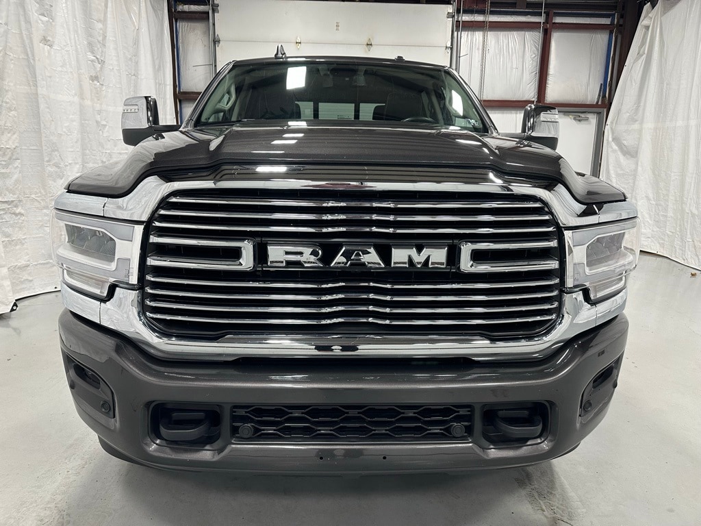 **6-Passenger Seating, Power Sunroof, 12" Navigation, Heated and Cooled Front Seats, Heated Steering Wheel, Blind Spot Monitor, Auto Dimming Mirrors, Auto High Beams, Rain Sensing Wipers, LED Headlights, Running Boards** Balance of Factory Warranty, Bluetooth, Cummins 6.7L I6 Turbodiesel, 4WD, Granite Crystal Metallic Clearcoat, Black w/Leather Trim 40/20/40 Bench Seat, 12" Touchscreen Display, 2nd Row In Floor Storage Bins, 4G LTE Wi-Fi Hot Spot, Alexa Built-In, Apple CarPlay, Auto Adjust In Reverse Exterior Mirrors, Auto Dim Exterior Mirror, Auto High Beam Headlamp Control, Auto Power-Folding Mirrors, Auto-Dimming Exterior Passenger Mirror, Automatic Headlights, Blind Spot & Cross Path Detection, Center Hub, Chrome Exterior Mirrors, Connected Travel & Traffic Services, Connectivity - US/Canada, Disassociated Touchscreen Display, Exterior Mirrors Courtesy Lamps, Exterior Mirrors w/Heating Element, Exterior Mirrors w/Memory, Exterior Mirrors w/Supplemental Signals, Foam Bottle Insert (Door Trim Panel), For Details, Visit DriveUconnect.com, For More Info, Call 800-643-2112, Forward & Reverse Utility Lights, Front dual zone A/C, Front LED Fog Lamps, Global Telematics Box Module (TBM), Google Android Auto, GPS Antenna Input, GPS Navigation, HD Radio, Heated Front Seats, Heated Steering Wheel, Integrated Voice Command w/Bluetooth, Laramie Level 1 Equipment Group, Leather Trim 40/20/40 Bench Seat, LED Reflector Headlamps, LED Tail Lamps, Mirror Running Lights, Off-Road Information Pages, ParkSense Front/Rear Park Assist System, ParkView Rear Back-Up Camera, Power Adjust Mirrors, Power Adjustable Convex Aux Mirrors, Power Adjustable Pedals w/Memory, Power driver seat, Power Heated Fold Telescopic Mirrors w/Memory, Power Sunroof, Power Telescoping Mirrors, Radio: Uconnect 5 Nav w/12.0" Display, Rain Sensitive Windshield Wipers, Rear Power Sliding Window, Rear Window Defroster, Remote Tailgate Release, Selectable Tire Fill Alert, SiriusXM Radio Service, SiriusXM w/360L, Trailer Tow Pages, Ventilated Front Seats, Wheels: 18" x 8.0" Polished Aluminum.